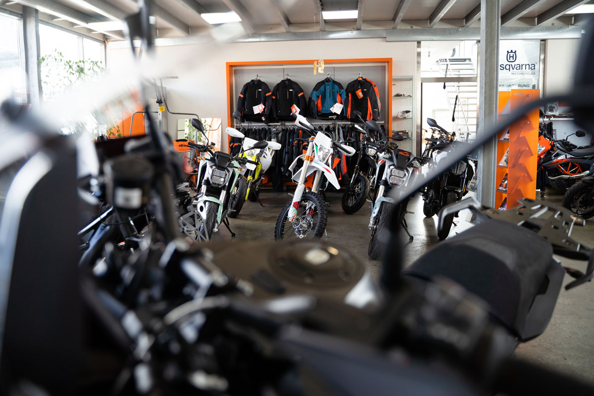 Stillstand? Fehlanzeige. 2014 stand die nächste Expansion an – in eine größere Halle im nahegelegenen Industriegebiet. Das 20-jährige Jubiläum feierte man dort gleich mit. Heute bietet das Zweiradhaus stolze 450 Quadratmeter für Werkstatt, Lager und Ausstellung. Und weil Leidenschaft sich selten in Quadratmetern messen lässt, kam 2017 noch die Husqvarna-Welt hinzu – mit allem, was das Enduro-Herz höherschlagen lässt.