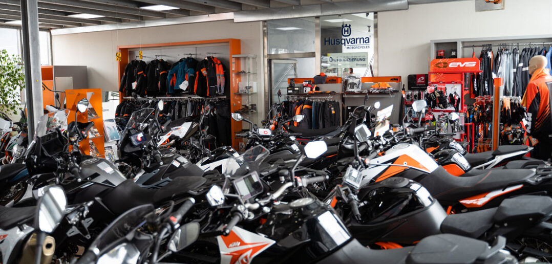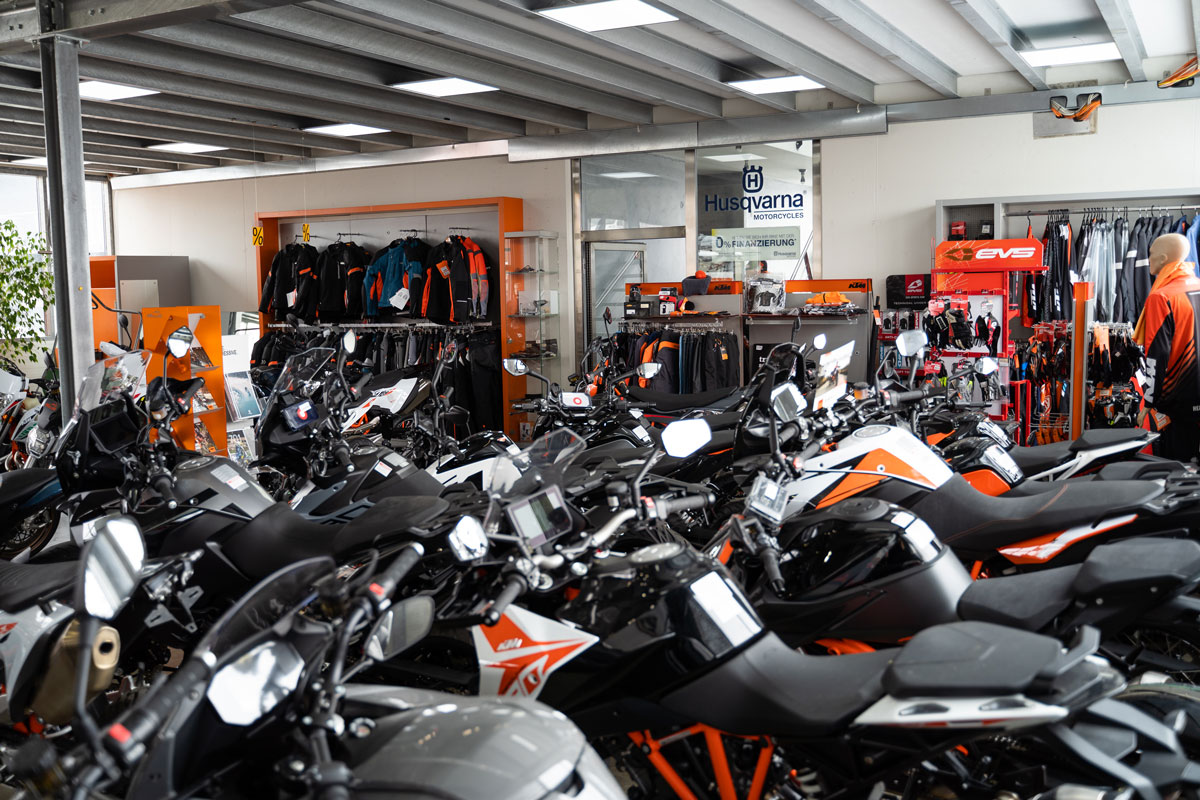 Damals, Anfang der Neunziger, startete Stefan Müller mit einer Handvoll KTM-Modelle – mehr Platz war ohnehin nicht. Doch mit den Jahren wurde das Angebot größer, der Laden zu klein, und der Erfolg lauter. 2003 folgte der Umzug in die Buchenberger Straße: 160 Quadratmeter pures Orange, mit hellen Räumen, einer modernen Werkstatt und einem Schauraum, der den Namen endlich verdiente.